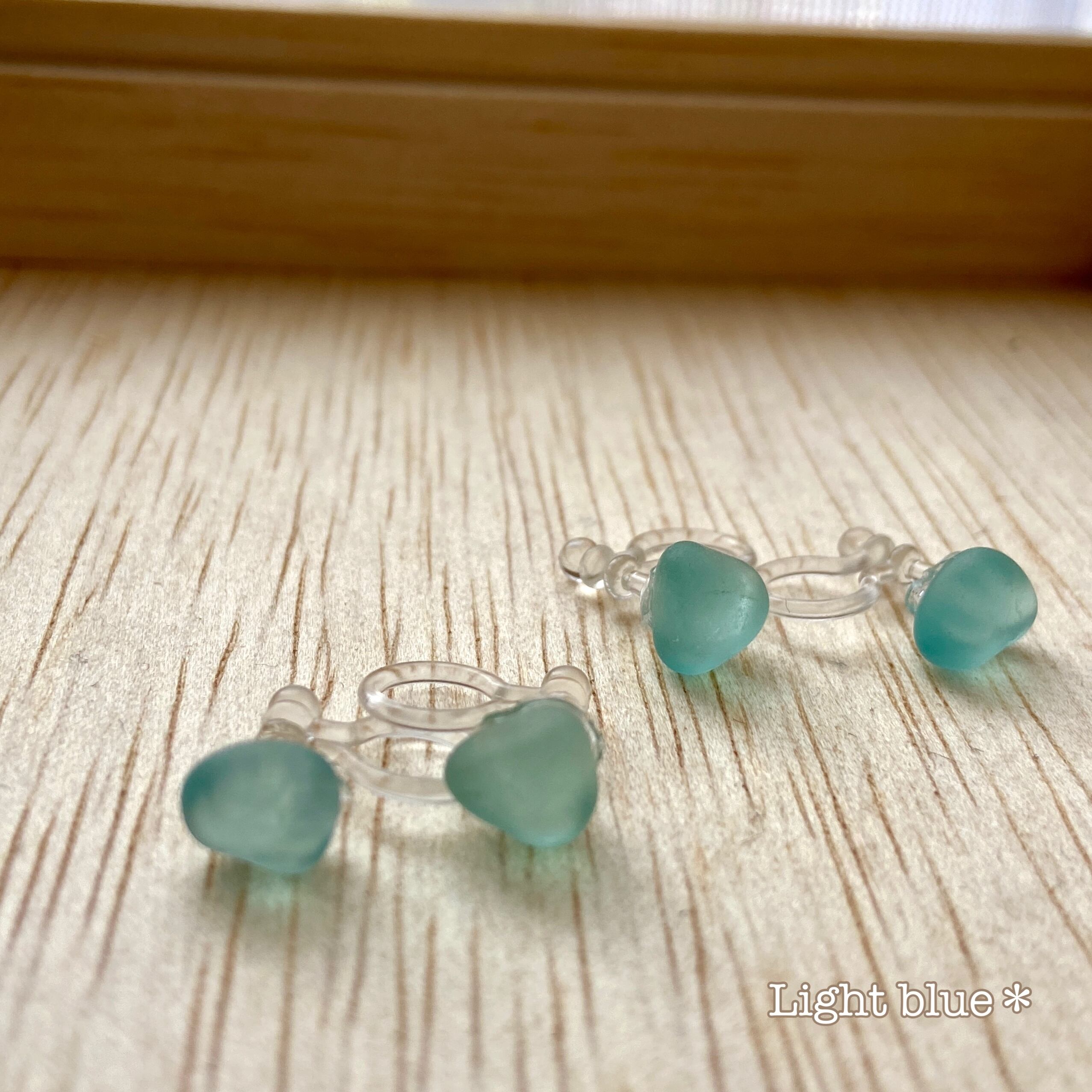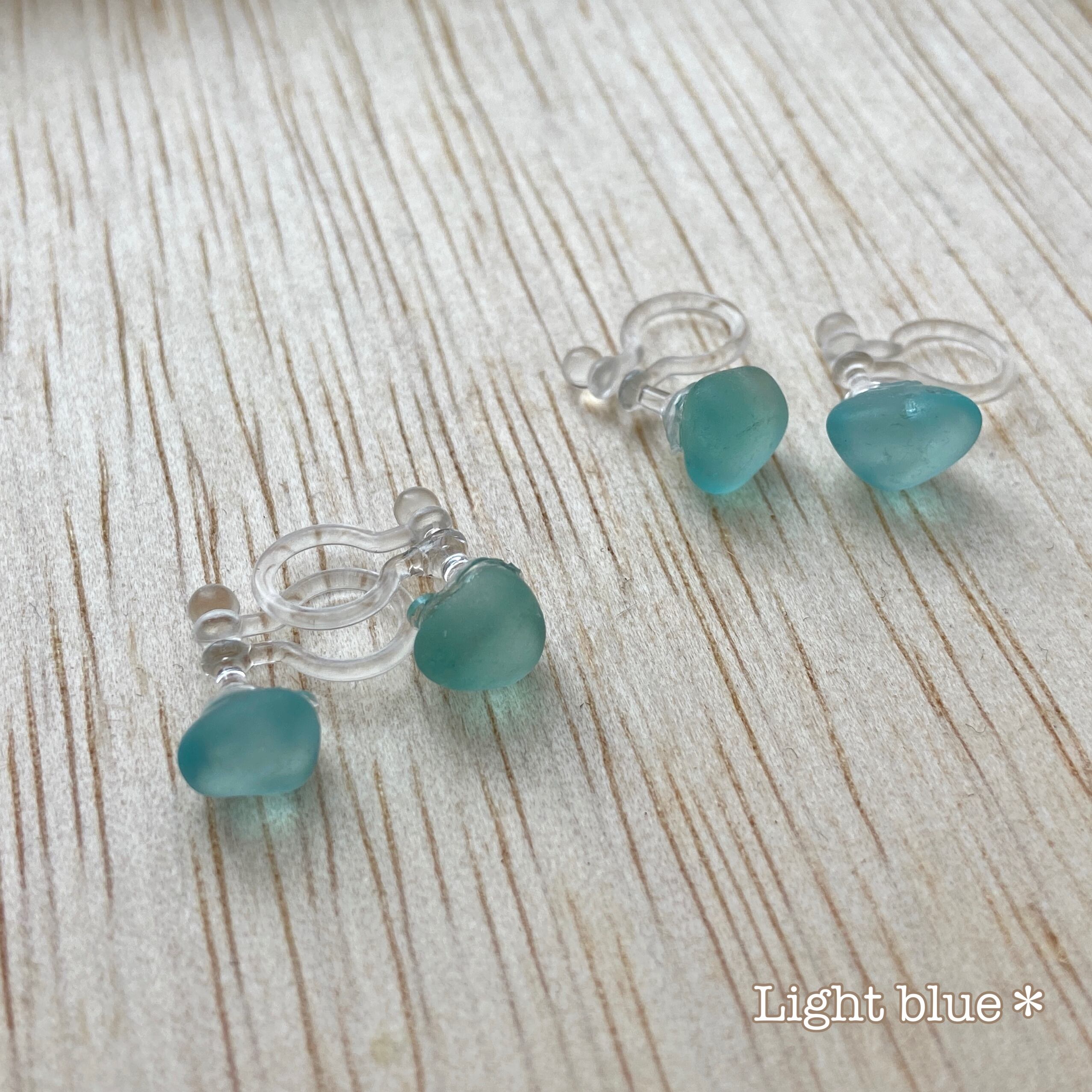 シーグラスの小粒 ノンホールピアス | Light blue *シーグラスとビーズのアクセサリー